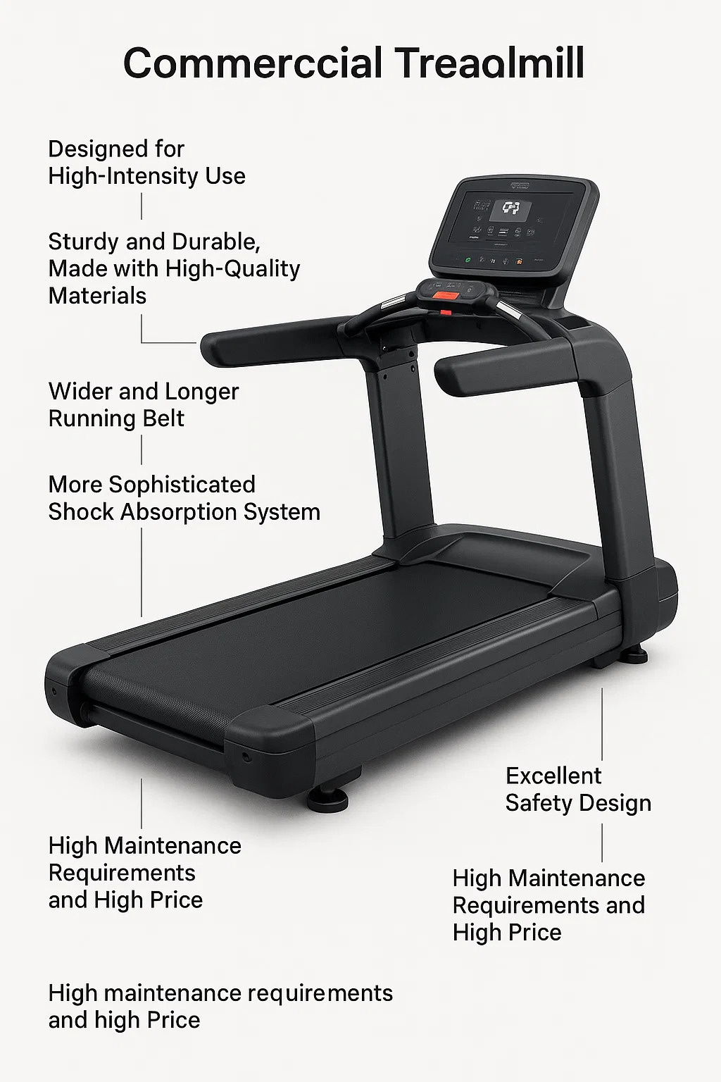 Let's talk about what a commercial treadmill is. You can think of it as the sturdy, heavy-duty treadmill you find in gyms. Here are its main features: