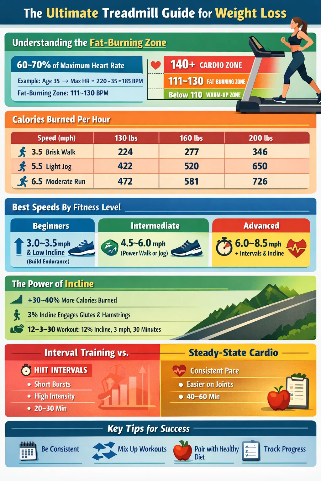 If you want the short answer: the best treadmill speed for weight loss is between 3.5 and 4.5 mph for walking, or 5 to 6 mph for jogging — depending on your current fitness level. These ranges keep your heart rate in the fat-burning zone (roughly 60–70% of your maximum heart rate) long enough to torch meaningful calories without burning out in the first ten minutes. That said, the "best" speed is not a fixed number. It shifts based on your body weight, age, fitness baseline, and how long you can sustain the effort.