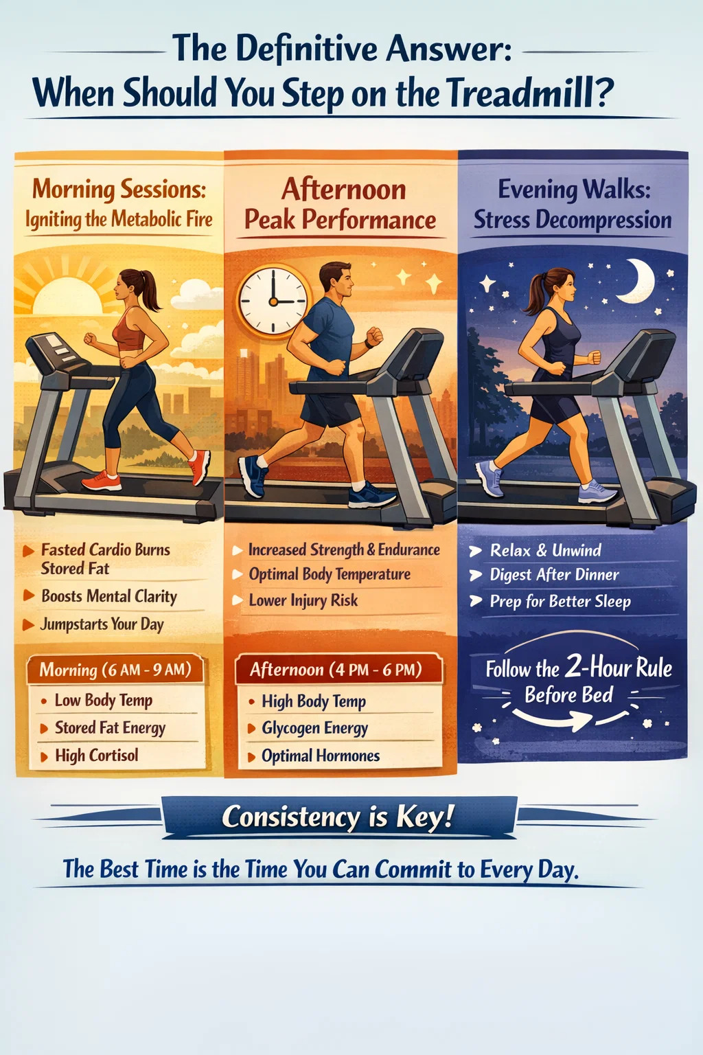 The absolute best time to walk on a treadmill depends on your primary goal: for maximum fat loss, the early morning on an empty stomach is ideal; for peak physical performance and injury prevention, the late afternoon (between 4:00 PM and 6:00 PM) is superior. However, the most effective time is ultimately the hour you can consistently commit to every single day. Consistency beats timing in every long-term fitness equation.